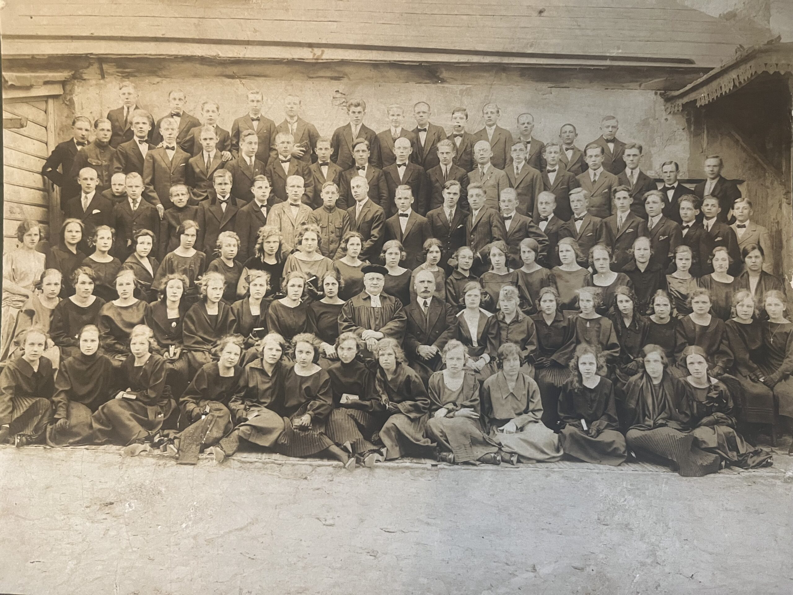 Keskel istuvad õpetaja Friedrich Stockholm ja köster Ernst Loderaud.